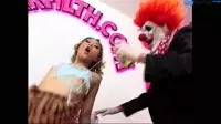 In a dark and twisted circus tent, an orgy unfolds as the group of clowns unleash their true desires upon each other.The air is filled with lust and the stench of arousal as these demented individuals explore the depths of depravity that their inner demons have long craved.One by one, each clown is blindfolded and guided to a different member of the group, ready for their twisted pleasure.The first blowbang begins with the blindfolded victim being surrounded by a gaggle of lustful clowns.As one dives down into a sea of erections, another moves in to replace them, keeping the frenzied momentum going without mercy or pause.Each time a new dick is presented before their mouth, they suck it with zeal, showing no signs of fatigue or relent.As more and more clowns are taken over by this animalistic urge to satisfy one another, dicks are passed around in an everincreasing circle of lust.The sight is bizarre and kinky but also strangely arousing, as the ecstasy oozes out of their orifices and splatters onto their rainbowcolored bodies.The scent of sweat, fear, and the pungent aroma of arousal fills the room as each clown works on getting their blowbang fix.Suddenly, in the middle of this debauched circus, a new scene unfolds.A slutty woman is introduced to the mix, offering her body for every cock that needs attention.Some take advantage of this opportunity with a fervor that suggests they have been waiting for this moment for ages.Others, more nervous, yet just as eager, explore their nastier desires through watching and participating in jerking off sessions.The woman expertly performs handjobs to every dick in sight while simultaneously pleasuring herself with a vibrator, her own lusts mixing with that of the clowns around her.In a whirlwind of sexual excitement, cum starts to flow as one after another, climaxing onto her face and body.Some clowns blow their loads over her, marking her as their sexual conquest for this day.Others, too caught up in the moment of their first handjob, accidentally shoot their loads all over each other, adding a hilarious yet kinky touch to this orgy scene.The entire spectacle is something no one expected but everyone desires more and more.The twisted and bizarre nature of this group clown orgy brings a new level of eroticism into the lives of these lustfilled individuals, forever leaving them craving for more such debauchery.